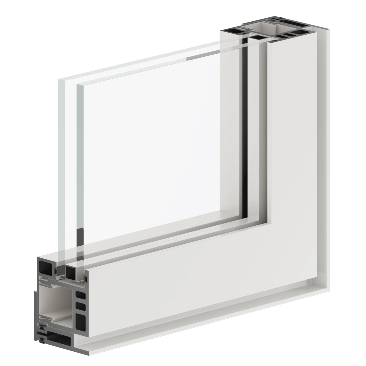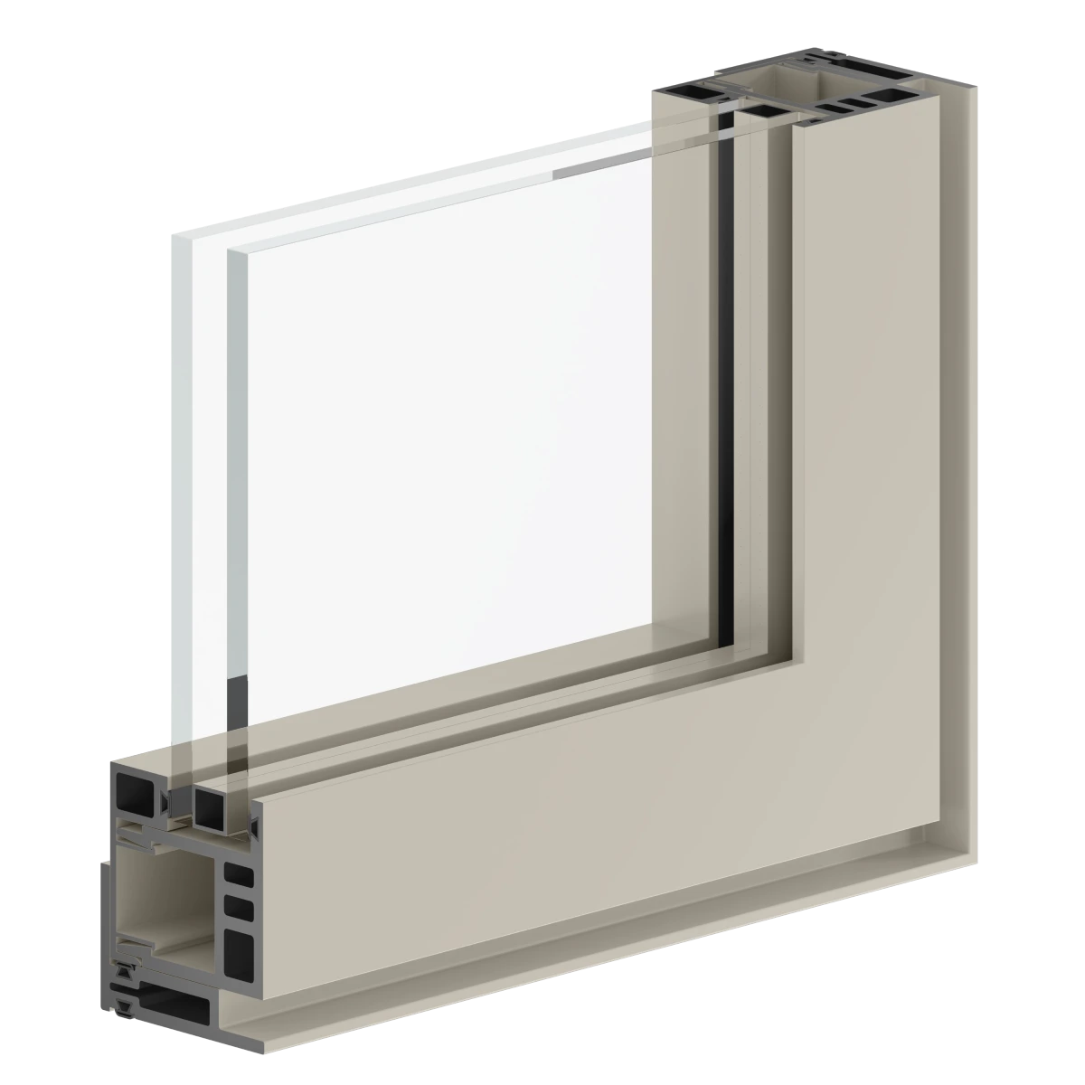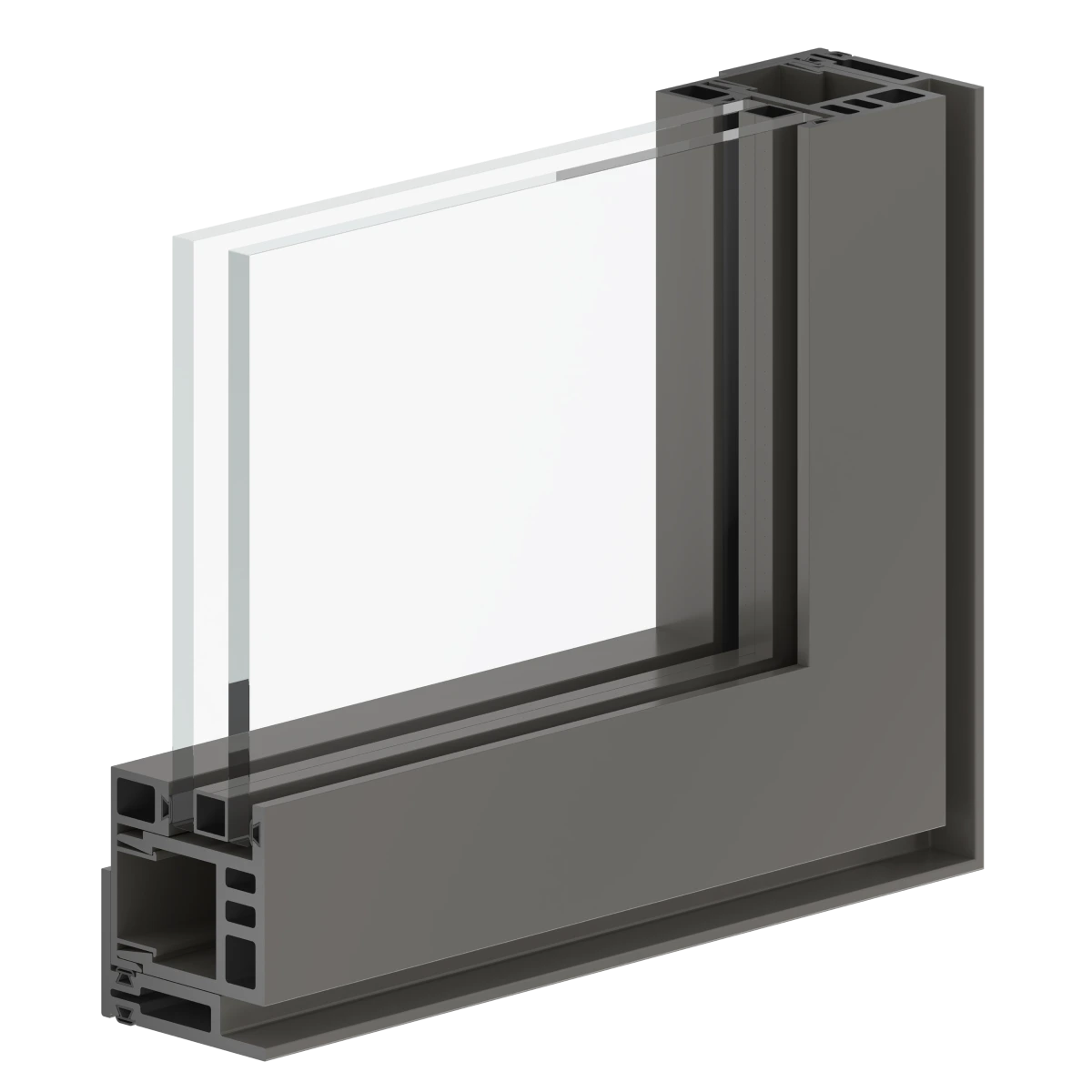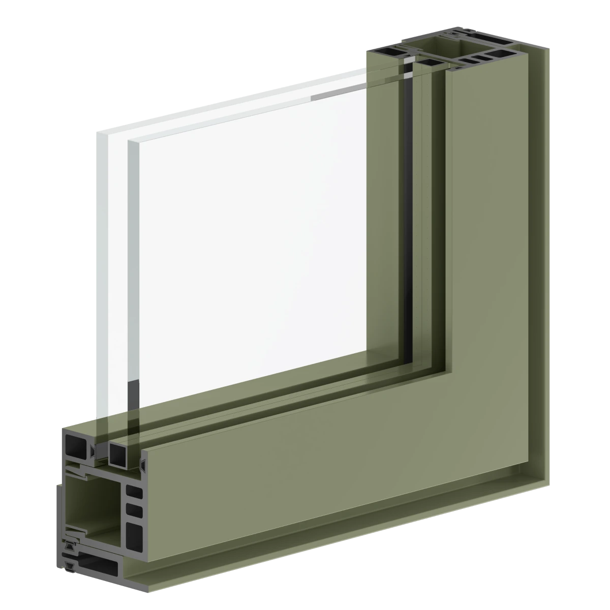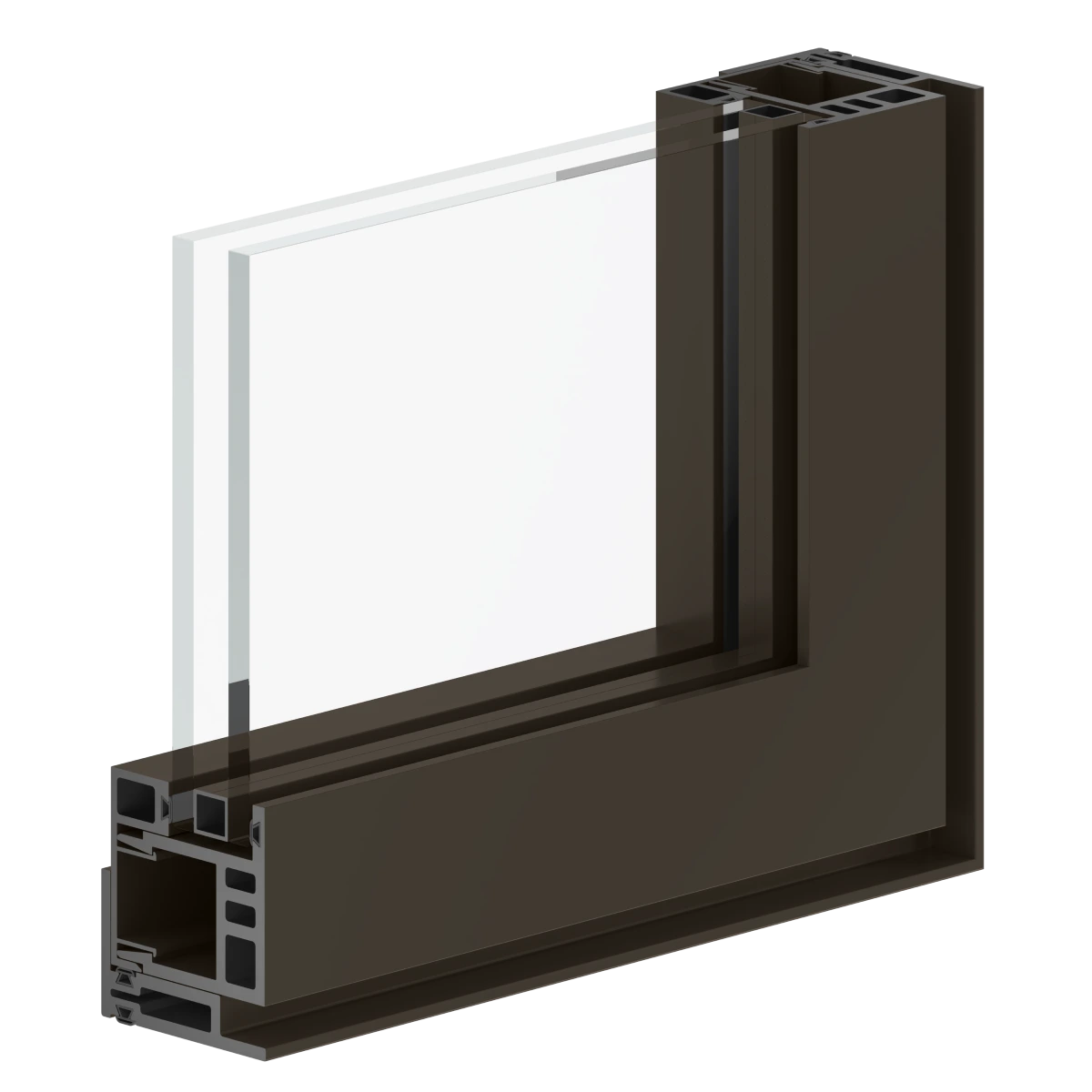 L'ajout d'une troisième couche de verre génère un espace d'air supplémentaire, améliorant ainsi la protection thermique. Le verre est superposé à la structure en aluminium, dissimulée par une sérigraphie noire, offrant une esthétique luxueuse.